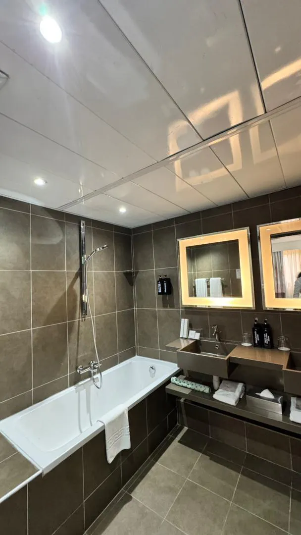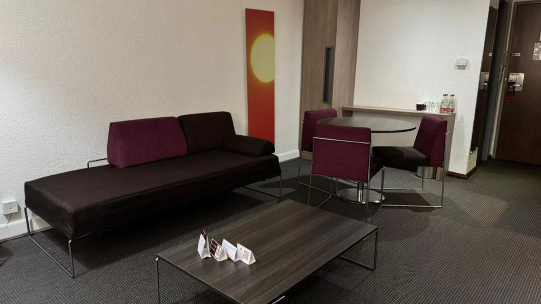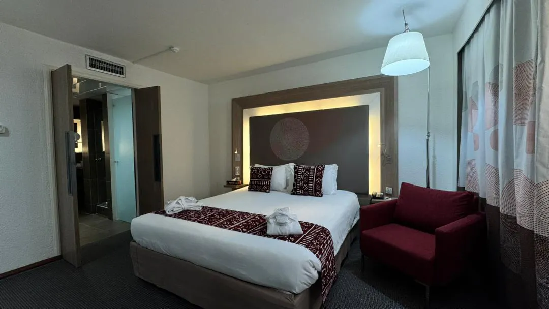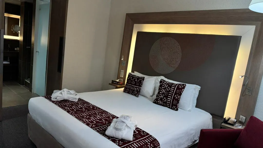 Spacious, contemporary design and adaptable, the Accra City Hotel Studio room is truly a place for living and perfect for all your needs. A modern spacious room 2-in 1 room with Queen bed, en suite bath/shower, sofa, large ergonomic work area, 32" LCD TV and Internet access, WiFi connection, hair dryer, iron & ironing board, mini bar, tea/coffee and complimentary mini bar.